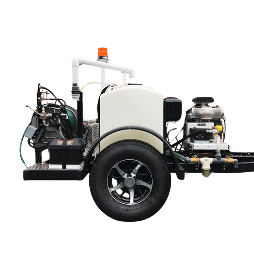 The 4018 (4000PSI at 18GPM) is the most popular unit for its ability to handle a wide array of jetting jobs. This sewer jetter can clean pipes 4" - 18" with tough blockages ranging from roots and grease to culverts with rocks and sand.