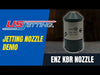 The KBR NOZZLE is a descaling nozzle designed to work in pipes up to 6. It is a great nozzle to use when working in heavy grease or root blockages. It is equipped with 4" rotary jets and 3" rear jets, or 4" rotary jets alone. If the 3" rear 4" rotary jet nozzle is selected, the rear jets can be plugged if more focus is needed on the rotary jets. If this is the case, the nozzle will have less thrust, but will be able to focus more on rotary performance and pipe wall cleaning.